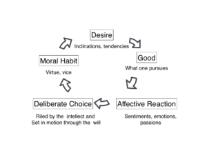 - L’abitudine morale (vizio o virtù) che predispone il soggetto a compiere azioni future in quel senso positivo o negativo. Cioè, rientrano nel processo giacché modificano le inclinazioni e le tendenze.