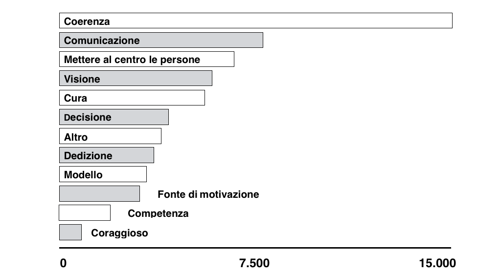 Un guerriero del Medio Evo, forse avrebbe risposto senza esitare: “coraggio”. Oggi, quella caratteristica avrebbe occupato l’ultimo posto nelle persone intervistate da Covey[1]. Dalle 54.000 risposte, viene premiato il leader-comunicatore (quasi 9.000 consensi) e, soprattutto il leader-coerente, che sfiora i 15.000 consensi.